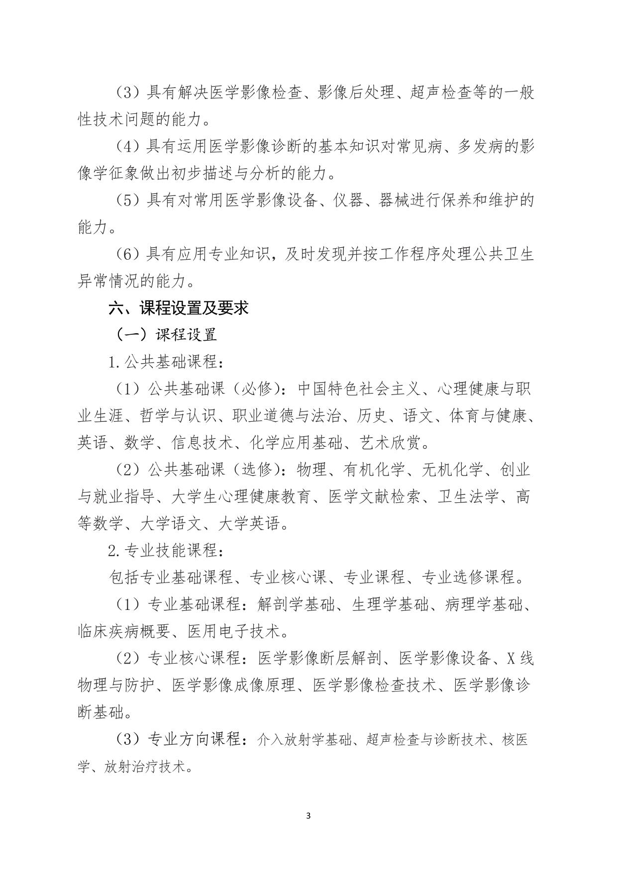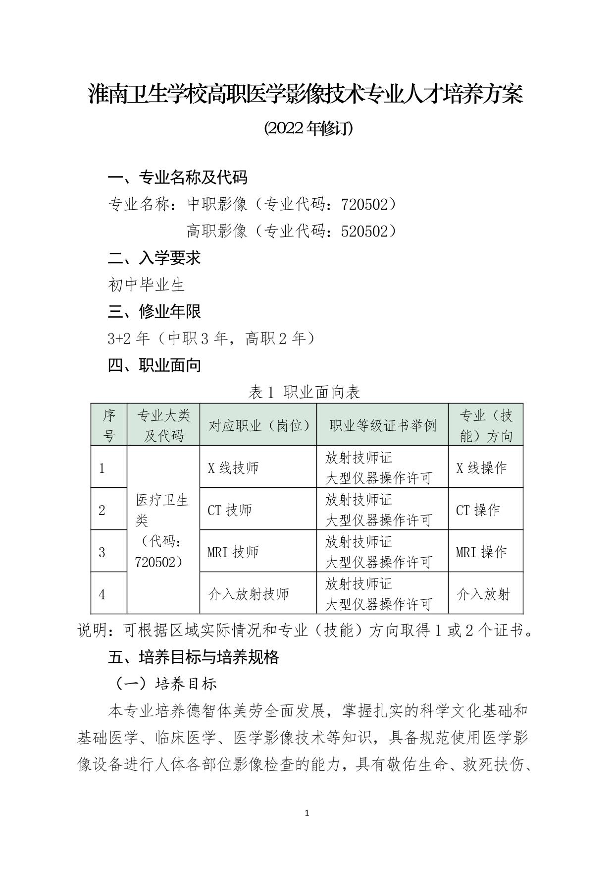 淮南卫生学校高职医学影像技术专业人才培养方案
