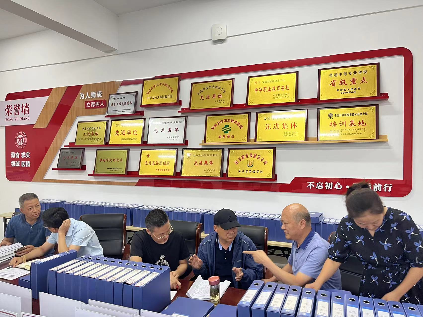 为做好A类办学水平评估迎检资料准备工作,学校邀请市教体局职成科齐兵检查我校A类办学水平评估资料,检查地点设在明德楼二楼会议室。