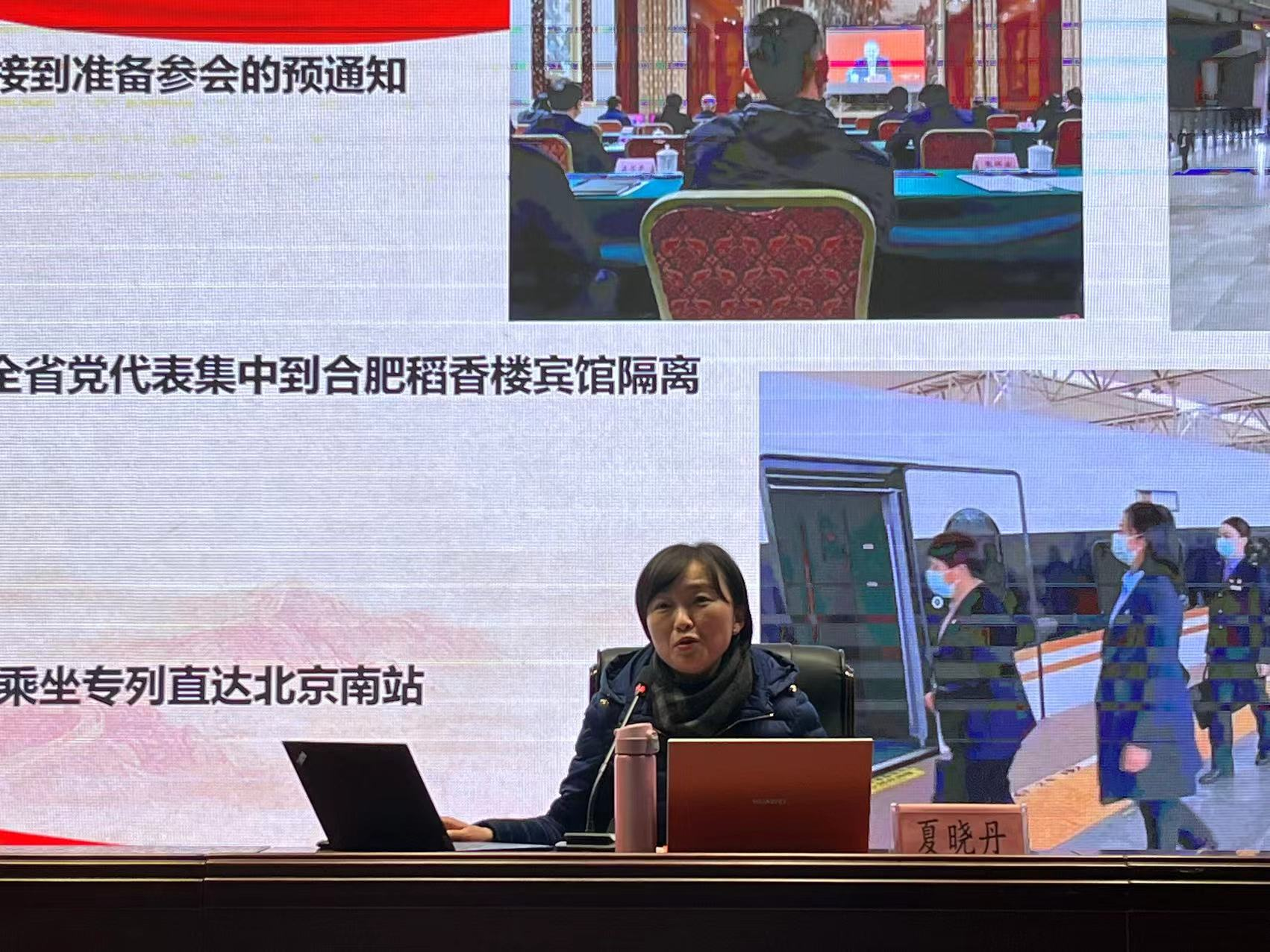 为进一步学习贯彻习近平新时代中国特色社会主义思想,落实“关于面向广大团员和青年开展学习贯彻习近平新时代中国特色社会主义思想主题教育”的部署要求,12月22日下午,学校邀请党的二十大代表、中国妇女第十三次全国代表大会代表、安徽理工大学公共卫生学院党委副书记夏晓丹作《启航新征程 奋进新时代》专题报告。学校党委委员、纪委书记曹珺出席并主持报告会,校党委班子成员、全体教职工、优秀学生代表四百余人参加报告会。