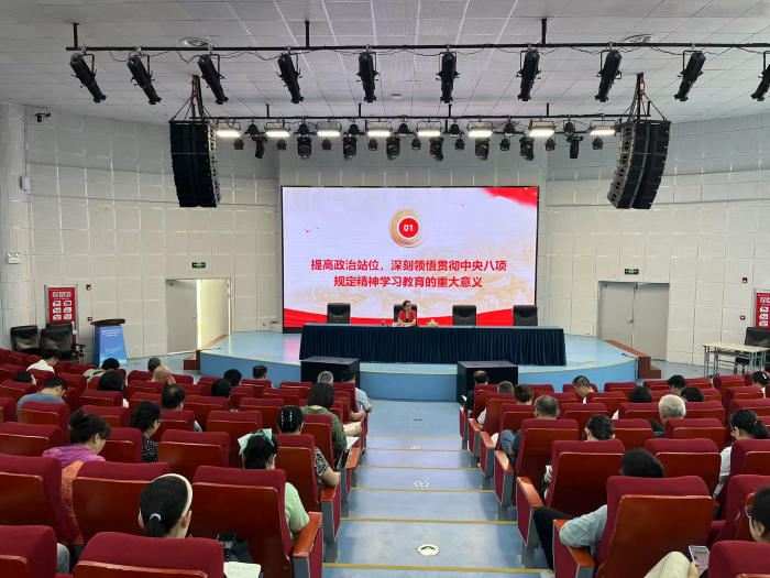 孙娟书记围绕“提高政治站位,深刻领悟深入贯彻中央八项规定精神学习教育的重大意义”、“把握核心要求,以钉钉子精神推动中央八项规定精神落地生根”、“坚持真抓实干,以优良作风赋能学校高质量发展”三大主题展开分析讲解,深入浅出地面向全体教职工介绍了学习教育的重要意义、学习内容和学习目标。并引用违反“四风”问题的典型案例开展警示教育,使全体教职工深刻认识到“四风”问题的危害性,进一步增强廉洁自律意识,做到知敬畏、存戒惧、守底线。