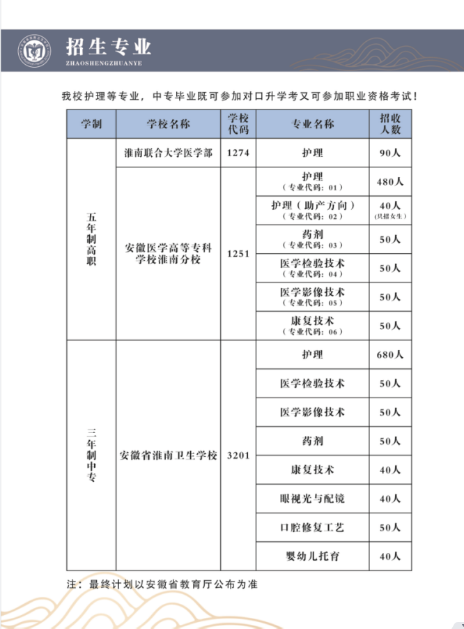 关于淮南卫生学校2023级三年制中专补录结束的公告