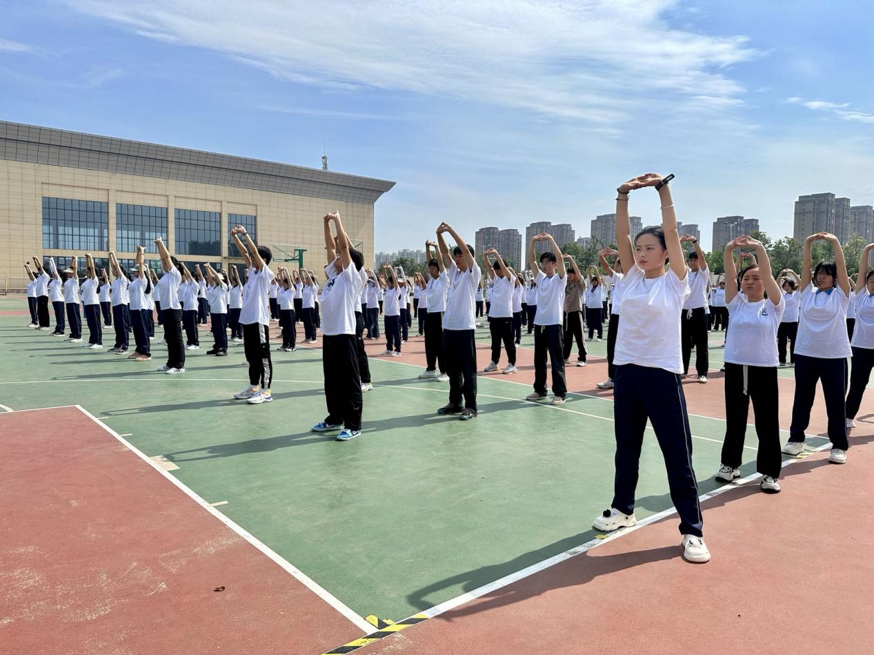 比赛于2023年6月7-8日在校运动场举行,来自64个班级的3200多名学生参加了本次比赛,比赛内容为国体版健身气功八段锦,比赛按年级分为甲、乙、丙、丁四个组。比赛中,同学们在悠扬的中国传统民族器乐配乐中,跟着口令,把两手托天理三焦、左右开弓似射雕、调理脾胃须单举、五劳七伤往后瞧、摇头摆尾去心火、两手攀足固肾腰、攒拳怒目增气力、背后七颠百病消等八个动作一一进行了认真的演练,一招一式间展现出了中华优秀传统养生文化代表之一八段锦柔和缓慢、圆活连贯、松紧结合、动静相间、神与形和、气寓其中的功法特点,在“调形、调息、调心三调合一”中同学们的身心得到全面的锻炼与提高。通过八段锦的习练与比赛,加深了同学们对祖国传统优秀养生文化的理解和把握,提升了同学们的民族自豪感和爱国热情。