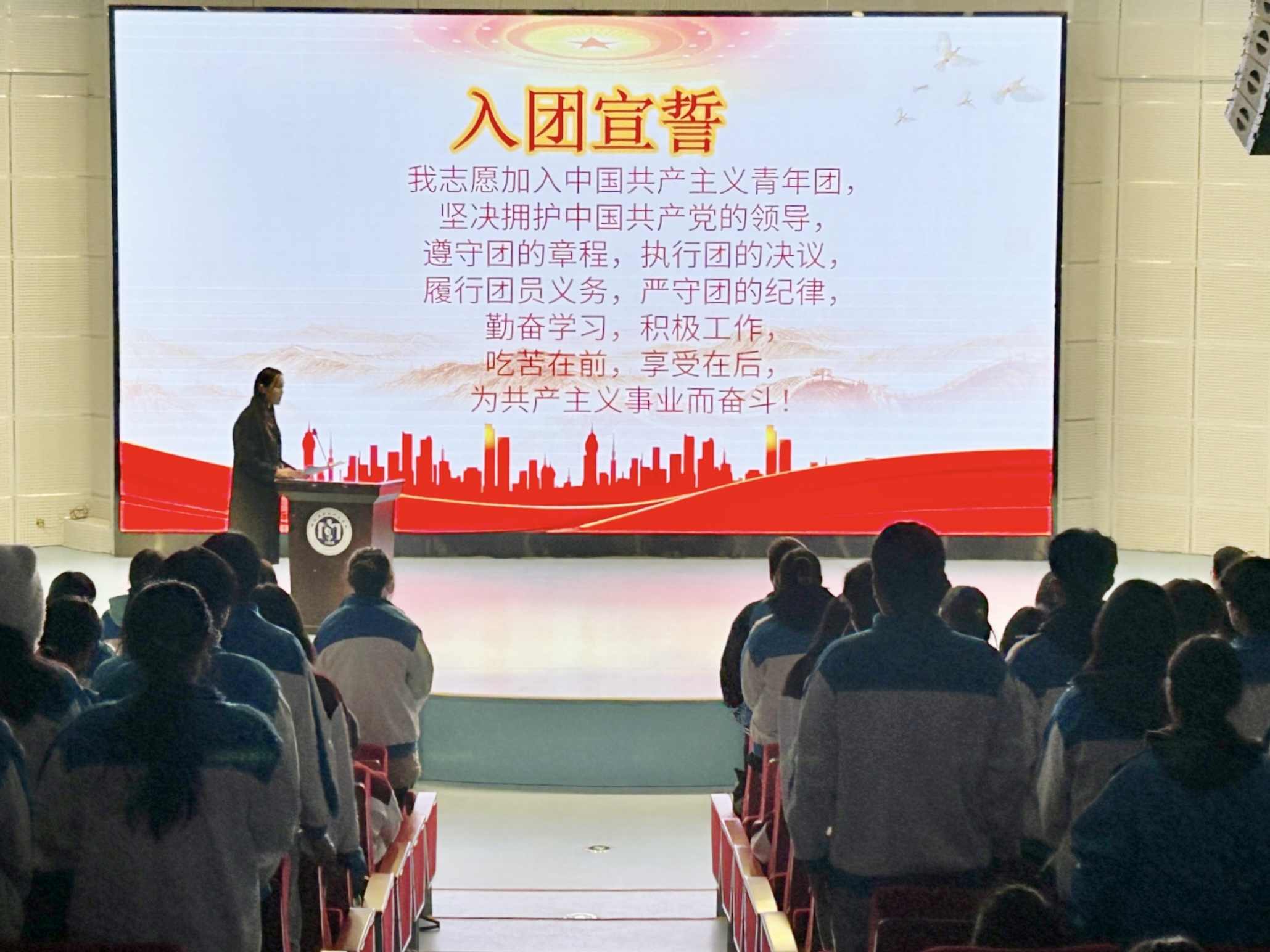 为壮大中国共产主义青年团的鲜活力量,深化团的自身建设,切实培养团员的光荣感和使命感,增强团员的进取意识,为团组织注入新的活力,11月28日淮南卫生学校团委为2023年度新加入共青团的团员青年举行集中入团仪式。