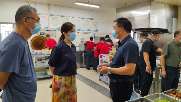 现场会召开前,校领导带队实地检查学校生活区,包括快递站、食堂以及超市等关键区域。针对食堂食品安全重点开展全环节排查:食材管理上,细致核查食品采购台账是否完整、,随机抽检肉类、蔬菜新鲜度及冷藏设备温控数据,严防不合格食材进入食堂;操作规范上,检查餐具消毒流程记录,查看生熟食材是否分区存放、操作工具是否分类使用,避免交叉污染;人员与环境安全上,核验食堂工作人员及第三方服务商健康证有效期,同时检查操作区域灭火器、应急照明等消防设施运行状态,保障操作环境安全。